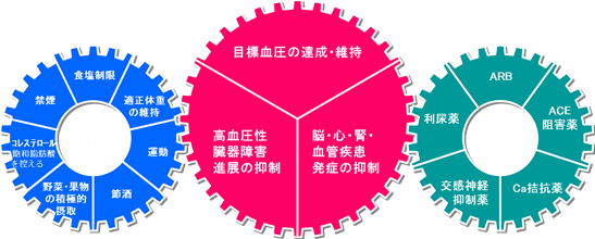 このような障害や合併症を予防するためには、高血圧にならないように注意し、すでに高血圧の方は血圧を正常化することが必要です。